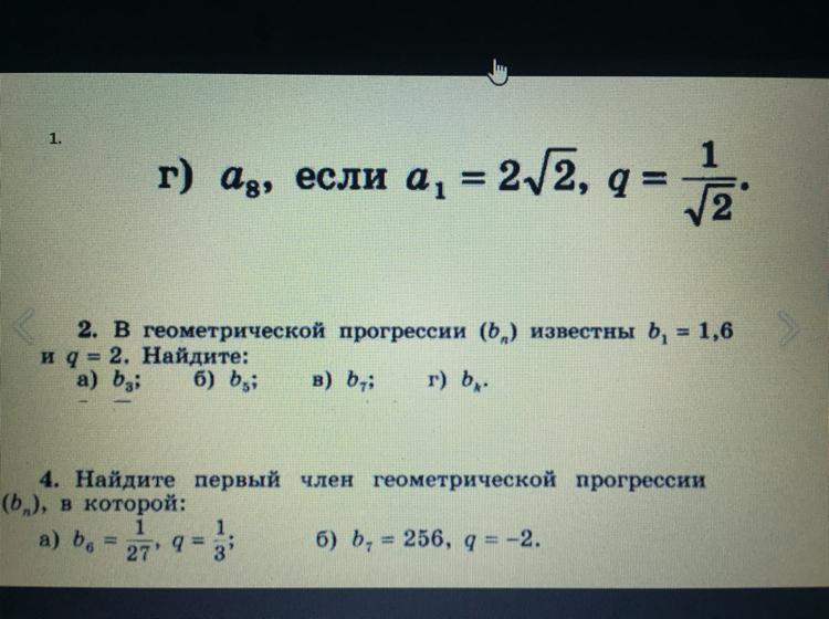 в) b₇ = b₁ * q⁶ = 1,6 * 64 = 102,4