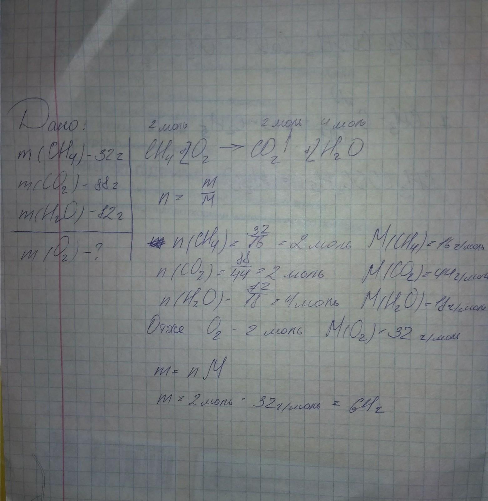 Під час спалювання метану масою 32 г утворилися вуглекислий газ масою 88 г і вода масою 72 г. Складіть рівняння реакції. Обчисліть масу кисню, який прореагував. Поясніть відповідь.