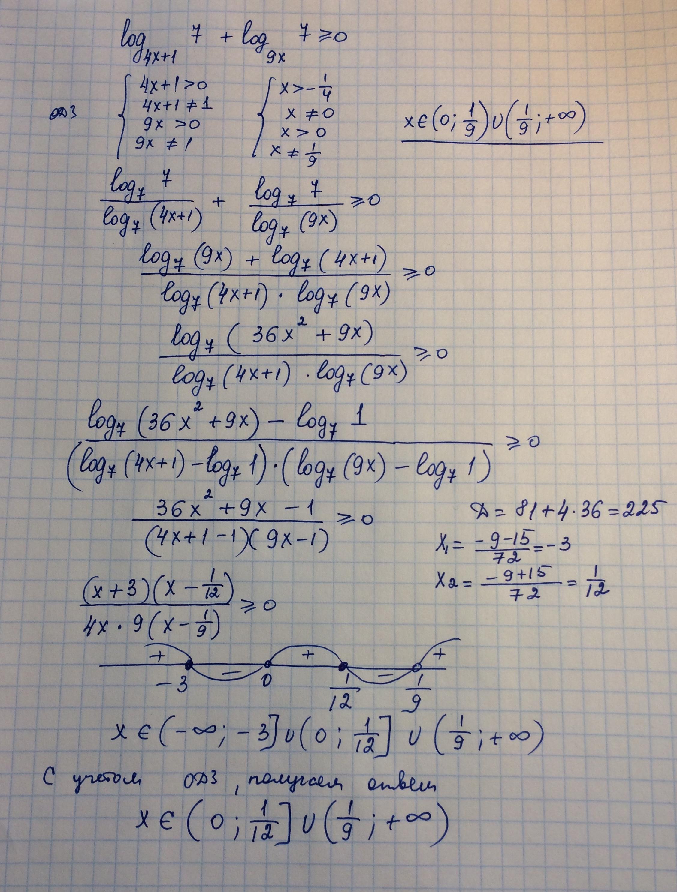 log(4x+1, 7) + log(9x, 7) >= 0