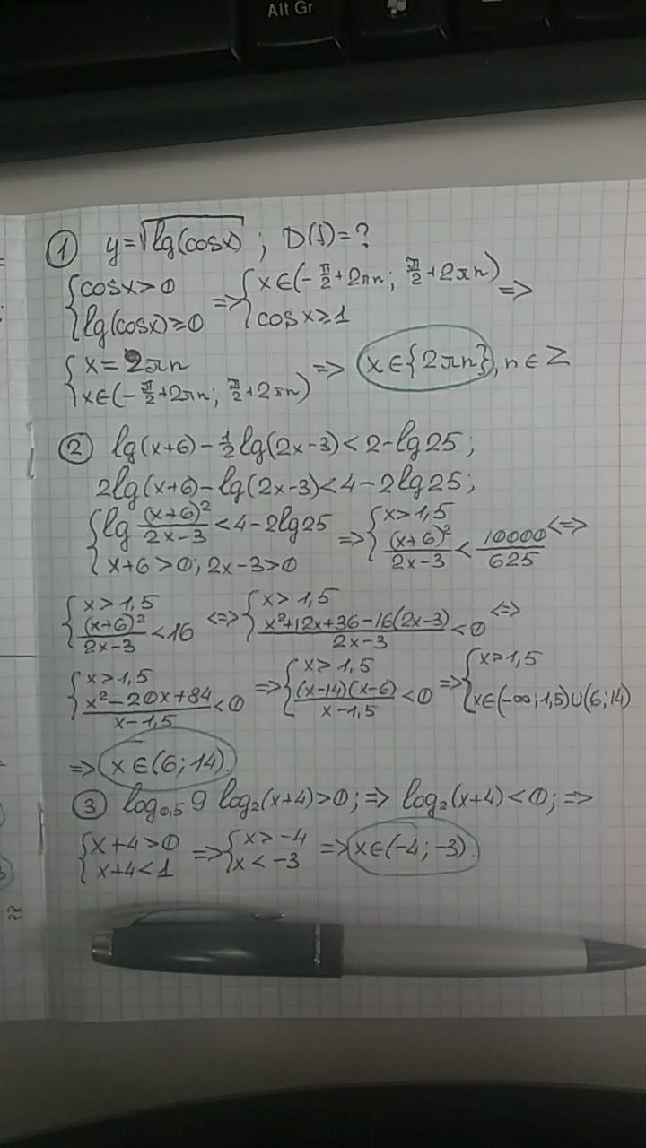 Подкоренное выражение не отрицательно, значит lg(cosx)>=0 отсюда cosx>=10^0; cosx>=1