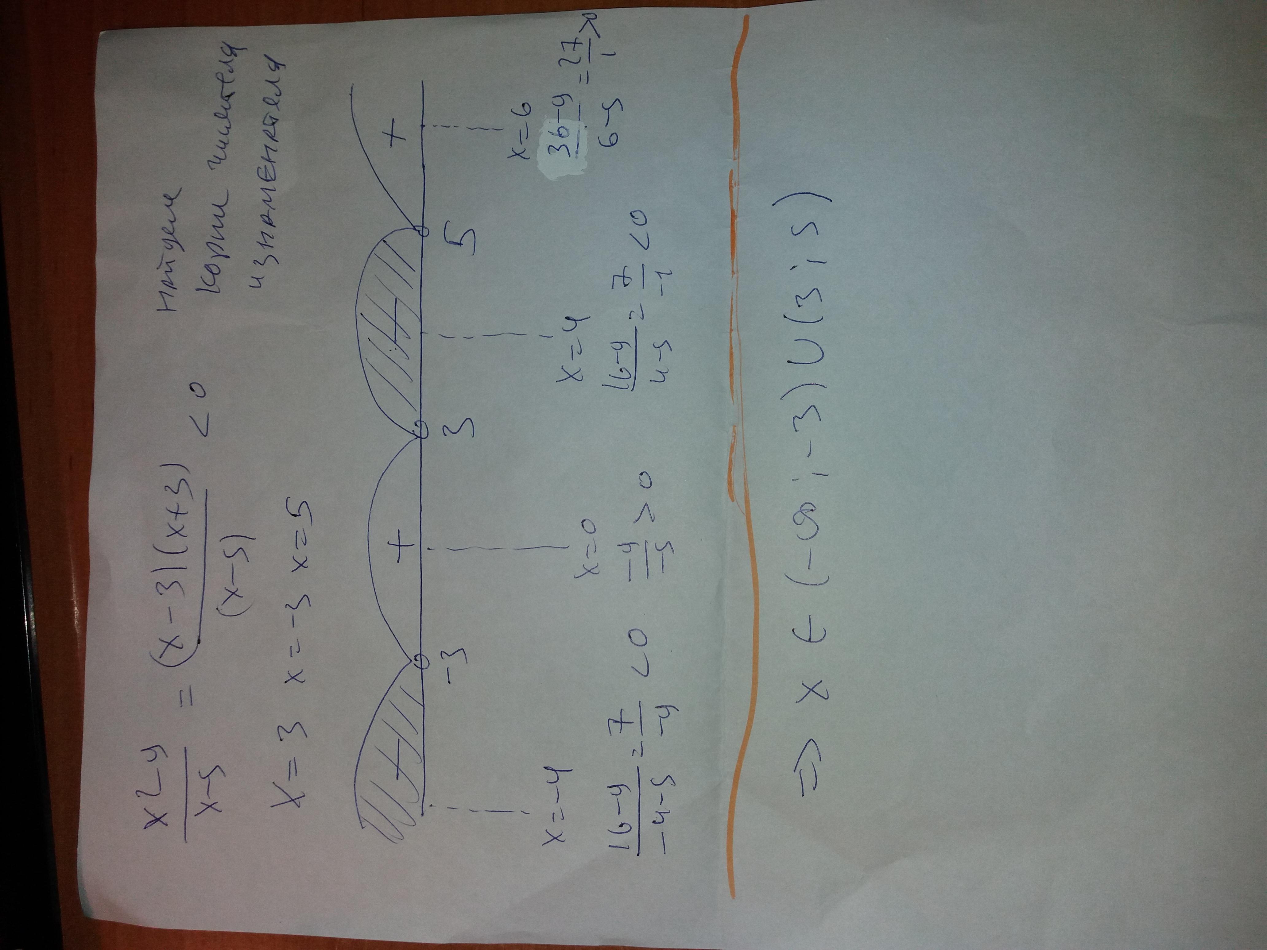 Решите пожалуйста, неравенство: x^2 -9/ x-5 < 0