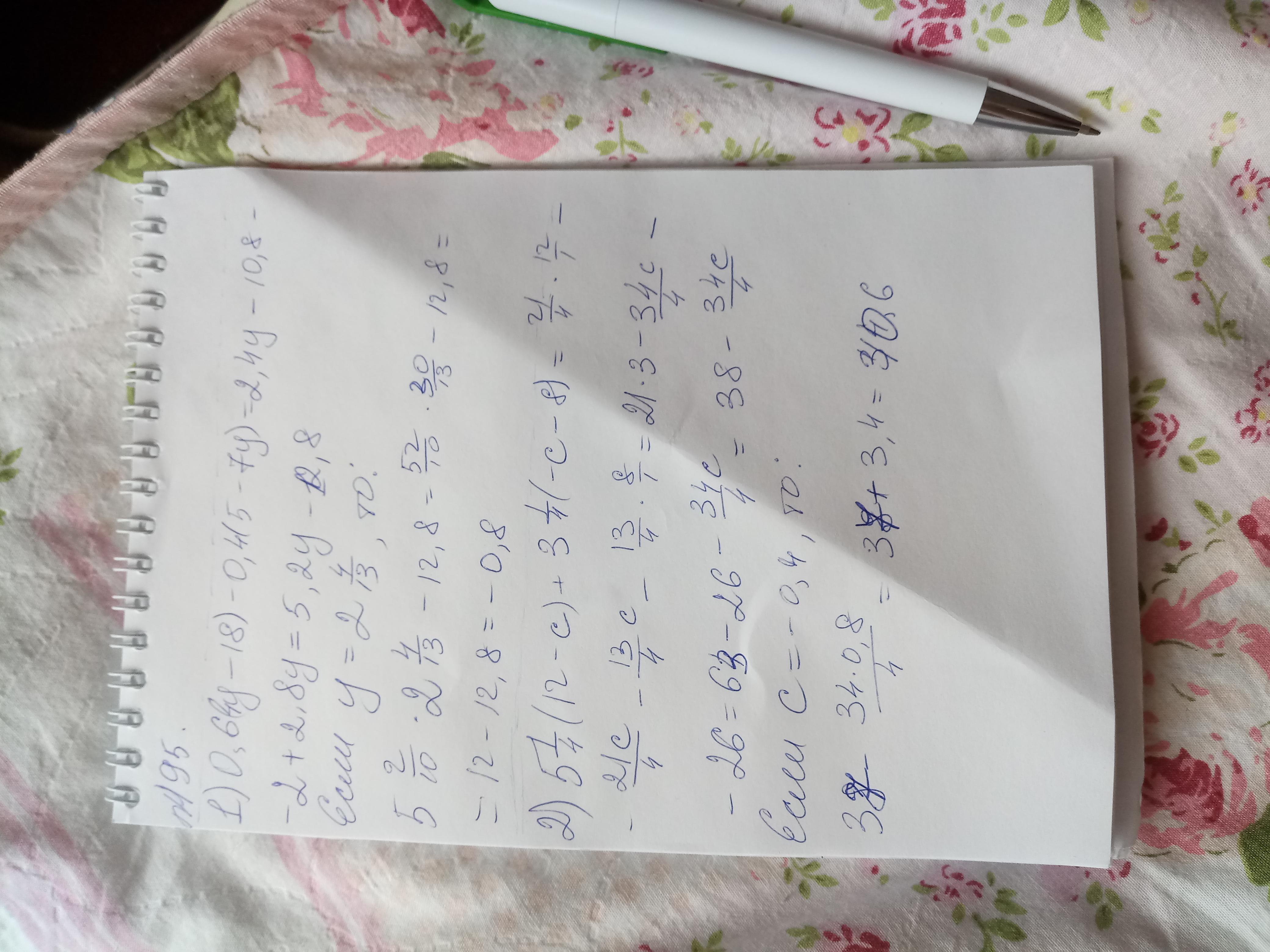 1)0,6(4y-18)-0,4(5-7y)=2,4y-10,8-2+2,8y=5,2y-12,8