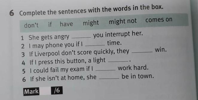 Complete the sentences with the words in the box. don't if have might might not comes on