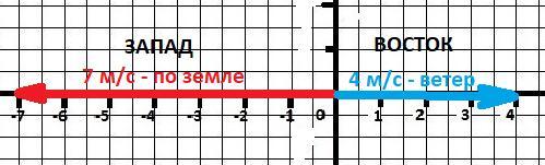 Велосипедист движется при встречном ветре с востока на запад его скорость 7 м секунду а скорость ветра 4М изобразите графически вектор скорости велосипедиста и вектор скорости ветра 1 см равен одному метру