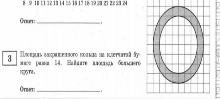 1 клетка пусть будет = х. Тогда радиус большого круга = 4х, а малого (вутреннего )= 3х.