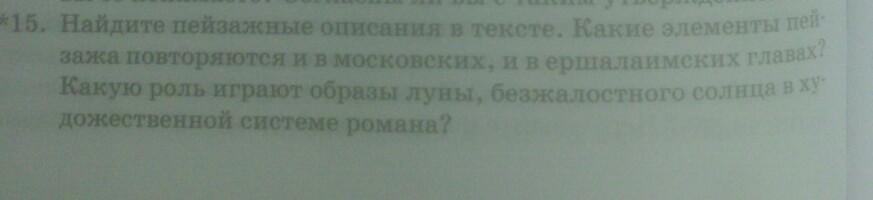 Если пейзаж в романе Мастера о Понтии Пилате символизирует преступление, совершившееся в Иудее, - казнь невинного Иешуа, то в современной Москве ничего не предвещает несчастья, не насыщен гневом, протестом против несправедливости. Он подчёркивает мысль писателя о том, что тёмные силы властвуют повсюду и тьма одерживает победу над светом, поглощая город. И это вечный закон жизни.