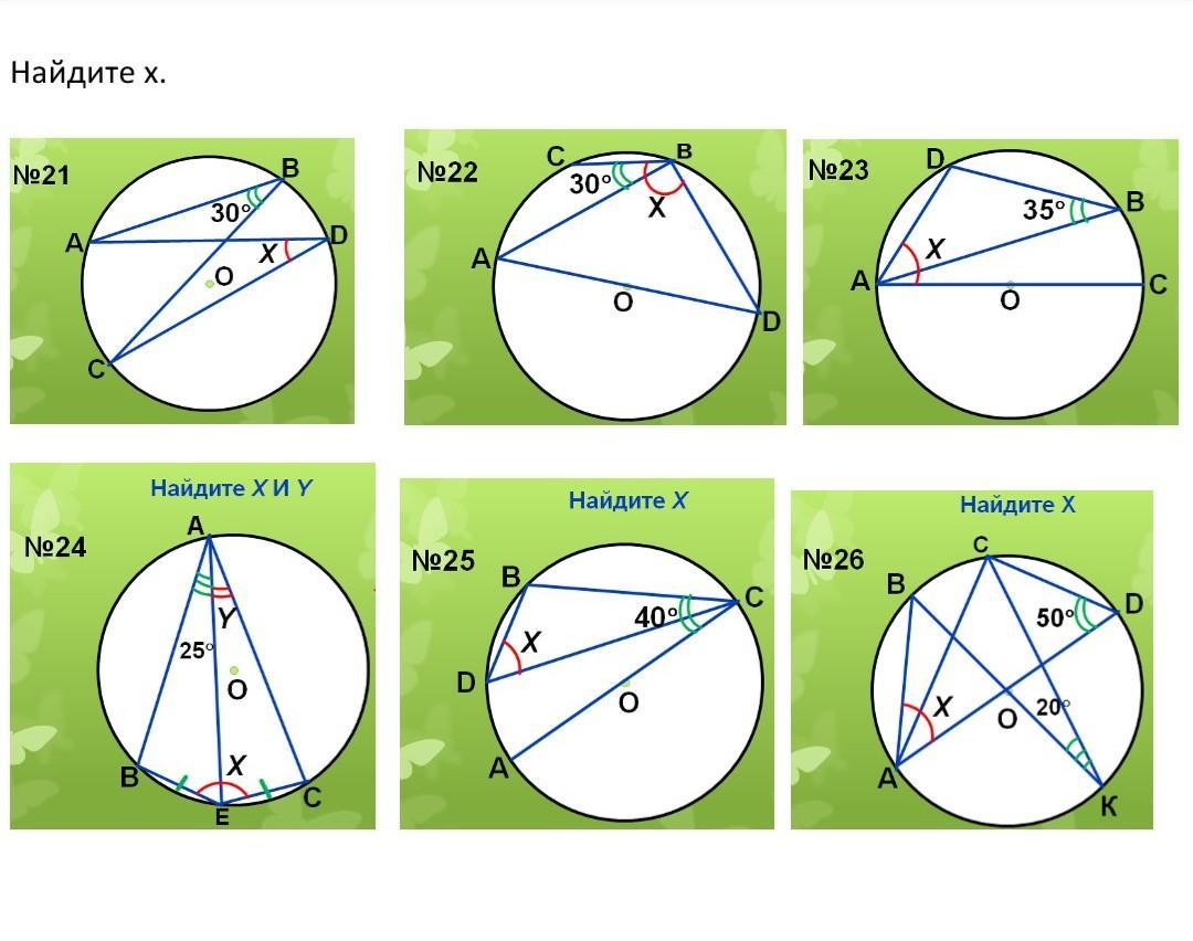 В 21 ответ 30, так как они опираются на одну и ту же дугу.