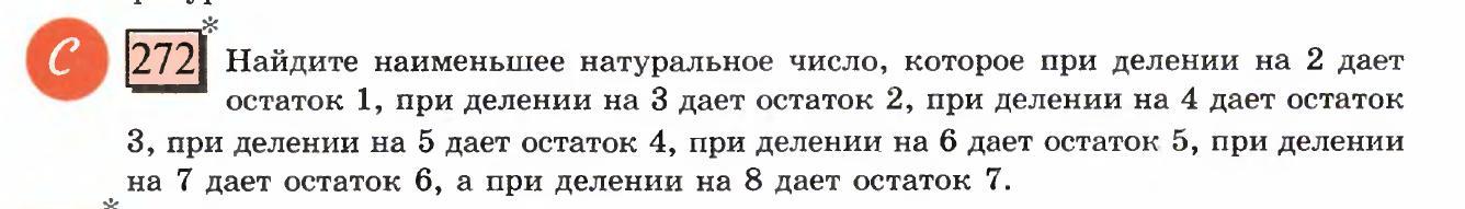 n + 1 = НОК (2, 3, 4, 5, 6, 7, 8) = 8 × 7 × 5 × 3 = 840.