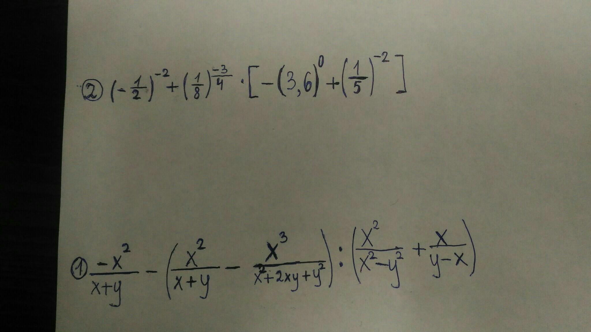 2) решим то, что во второй скобке. в знаменателе первой дроби дана формула сокращенного умножения, разложим ее и получим: (у+х)(х-у), что и будет общим знаменателем. обратим внимание, что знаменатель второй дроби отличатся знаками от общего знаменателя. чтобы это исправить, нужно умножить дробь на -1. получим выражение: