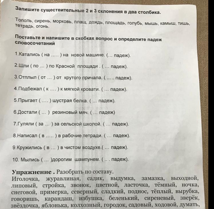 3 склонение: сирень, морковь,площадь,мышь, тишь, тетрадь.