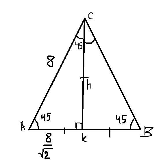 Найдем высоту CK в прямоугольном треугольнике AKC: CK^2=AC^2-AK^2=64-32=32