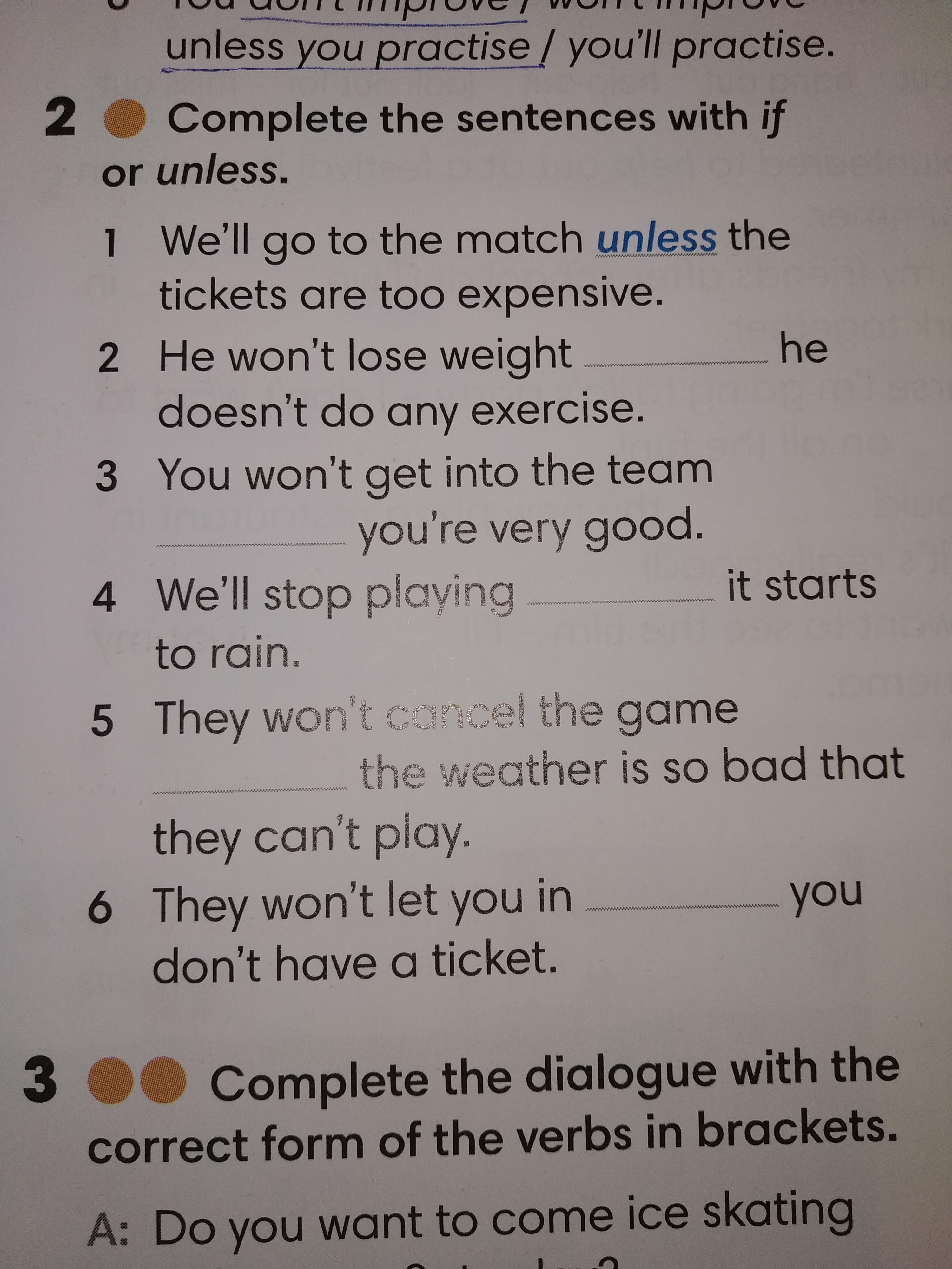 5. unless они не отменят игру ЕСЛИ погода НЕ такая плохая что они не смогут играть
