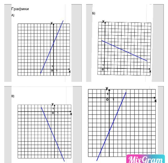 у=kx+b ⇒ Если k<0 , то угол наклона прямой к положительному направлению оси ОХ тупой, если k<0 , то острый. Если b>0 , то пересечение с осью ОУ в точке , расположенной в верхней полуплоскости, если b<0 , то эта точка в нижней полуплоскости.