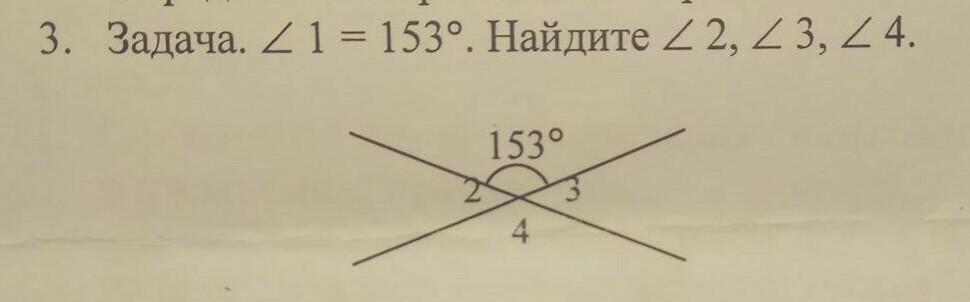 Смежные углы ∠1+∠3=180 ⇒ ∠3=180-153=27°