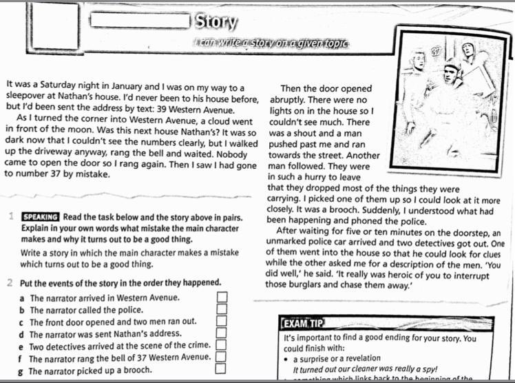 помогите с английским, пожалуйста! нужно прочитать текст, и выполнить задания 1 и 2! заранее благодарна! (в первом задании история должна быть буквально в трех-четырех предложениях)
