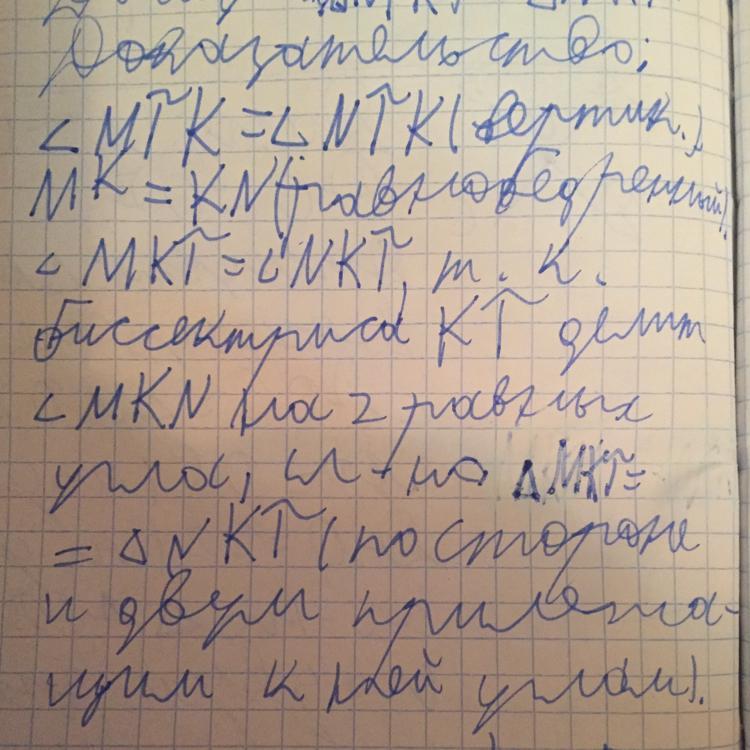 Доказать: треугольник МКТ равен треугольнику НКТ