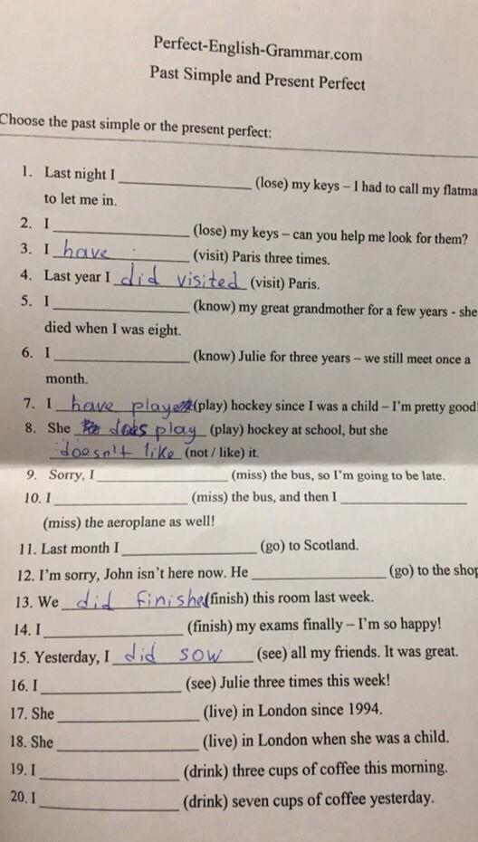 10 have missed, have missed - (не уверена)