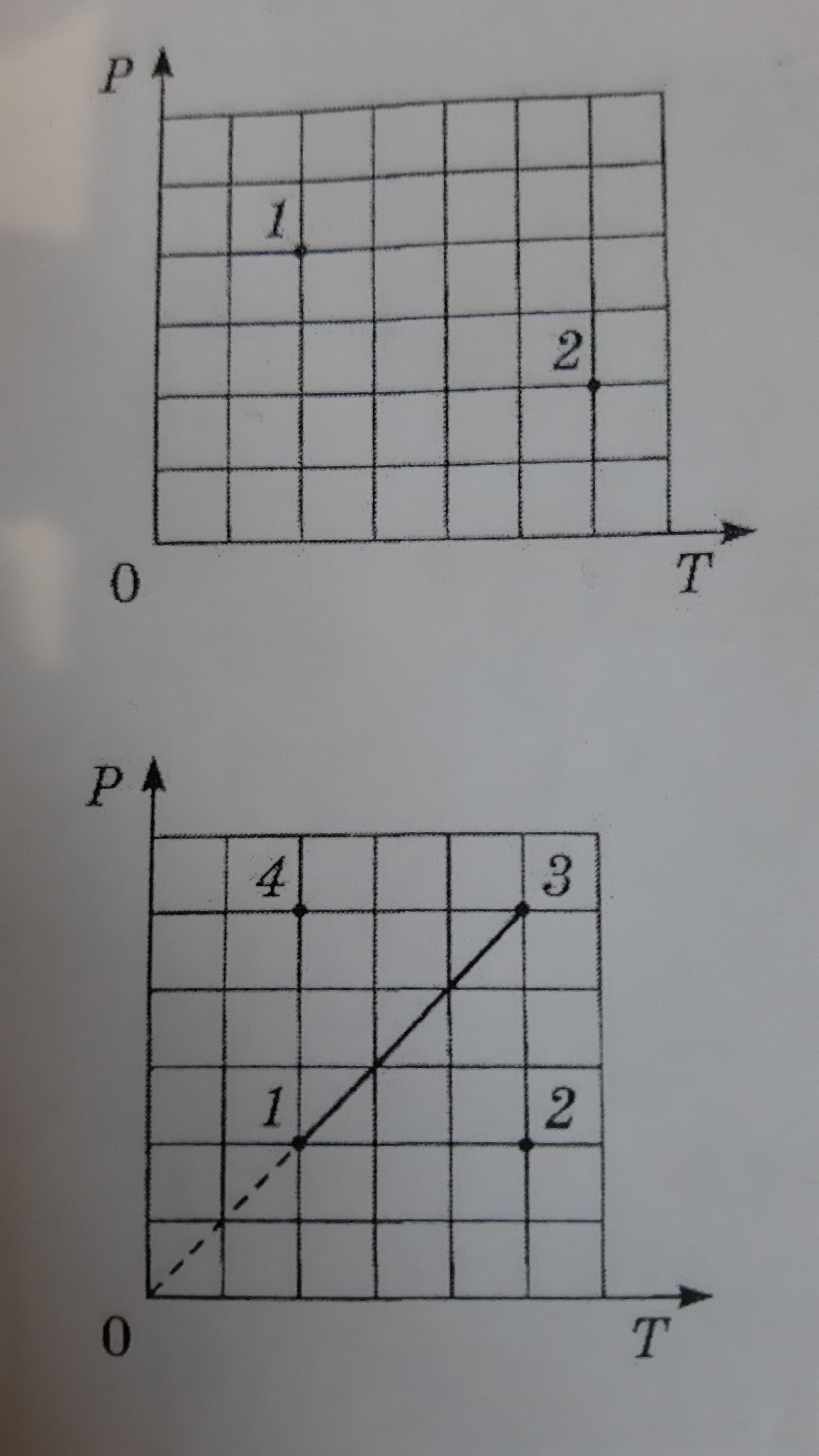 На диаграмме точками 1,2,3,4 обозначены сост. одной и той же массы газа .Сравните их объемы.
