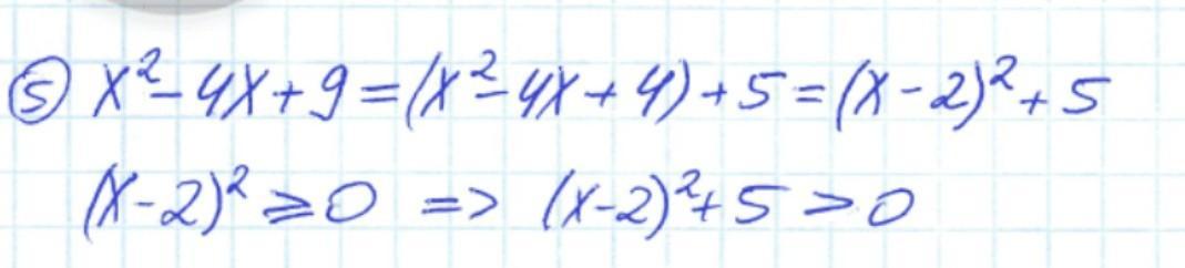 x²-4x+9 мы берем и выделяем полный квадрат x²-4x+4 это по формуле сокращенного умножения равняется (x-2)² , то есть мы разложили девятку на 5 + 4 , а значит остающуюся пятёрку добавим к полному квадрату , и получилось вместе (x-2)²+5 , а выражение в квадрате всегда больше и равно нуля , а значит (x-2)²≥0 , а выражение (x-2)²+5≥5.