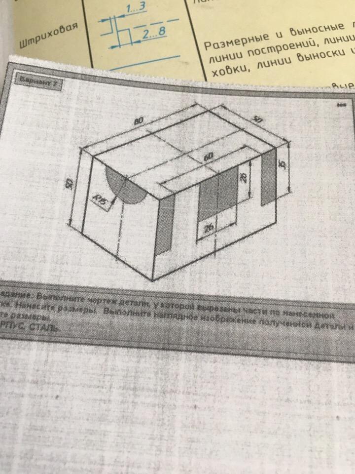 Выполните чертёж детали, у которой вырезаны части по нанесённой разметке. Нанесите размер. Выполните наглядное изображение полученной детал и нанесите размеры. ПОМОГИ ПОЖАЛУЙСТА)