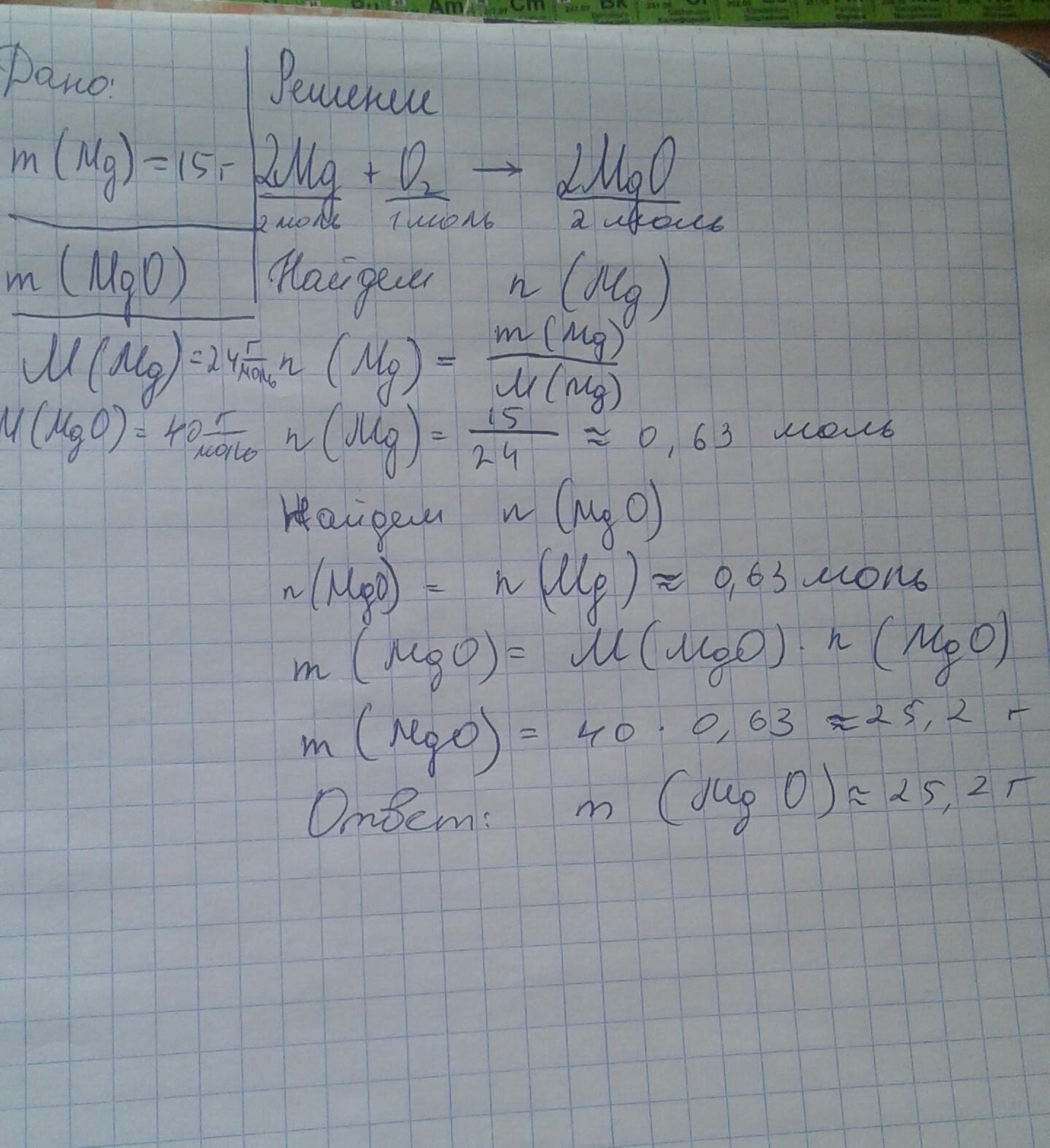 Выселить массу Оксида Магния, который поучиться в результате взаимодействия 15 г Магния и кислорода