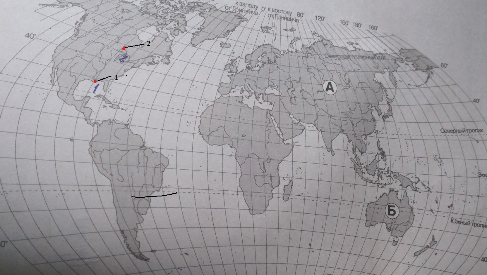 Поставьте точки на карте по приведённым ниже координатам. Обозначьте эти точки соответственно цифрами 1 и 2. Точка1- 26 сш 88зд