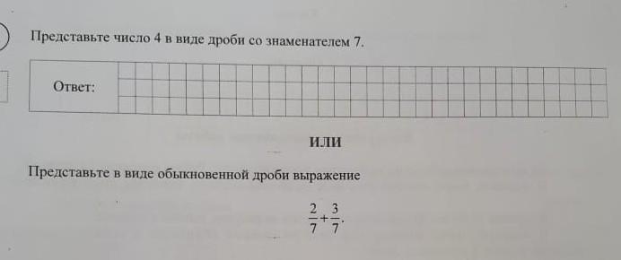 должно получится 4/7 т. к. знаменатель это то что под чертой и под чертой у нас 7, теперь просто нужно в числительные вписать цифру 4