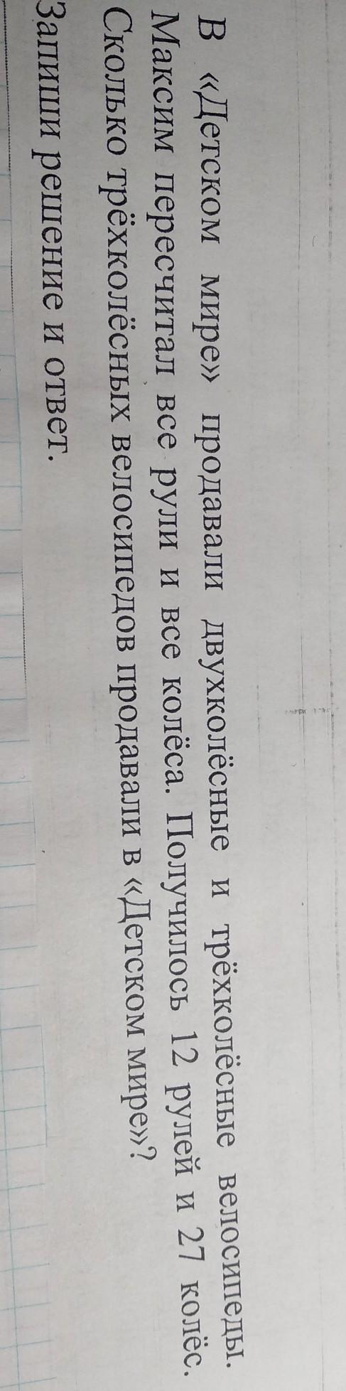 2)27-24=3(к) остались лишние, чтобы сделать трехколесные. значит , таких велосипедов 3