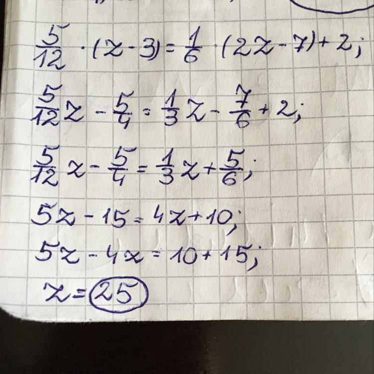 5/12z - 5/4 = 1/3z - 7/6 + 2
