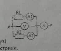 Вольтметр V показывает 12 В. Какие показания амперметров, если сопротивления резисторов R1=4 Ом, R2=8 0м