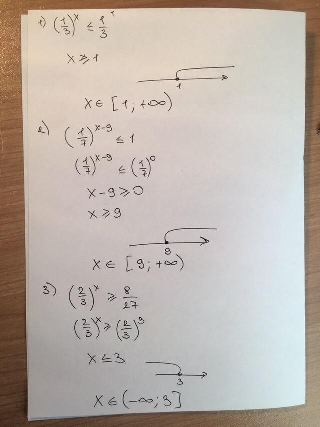 155. (1/3)^x≤ (1/3)^1 ⇒ x≥1 отмечаешь на прямой (надеюсь ты знаешь, как это делать), точка темная