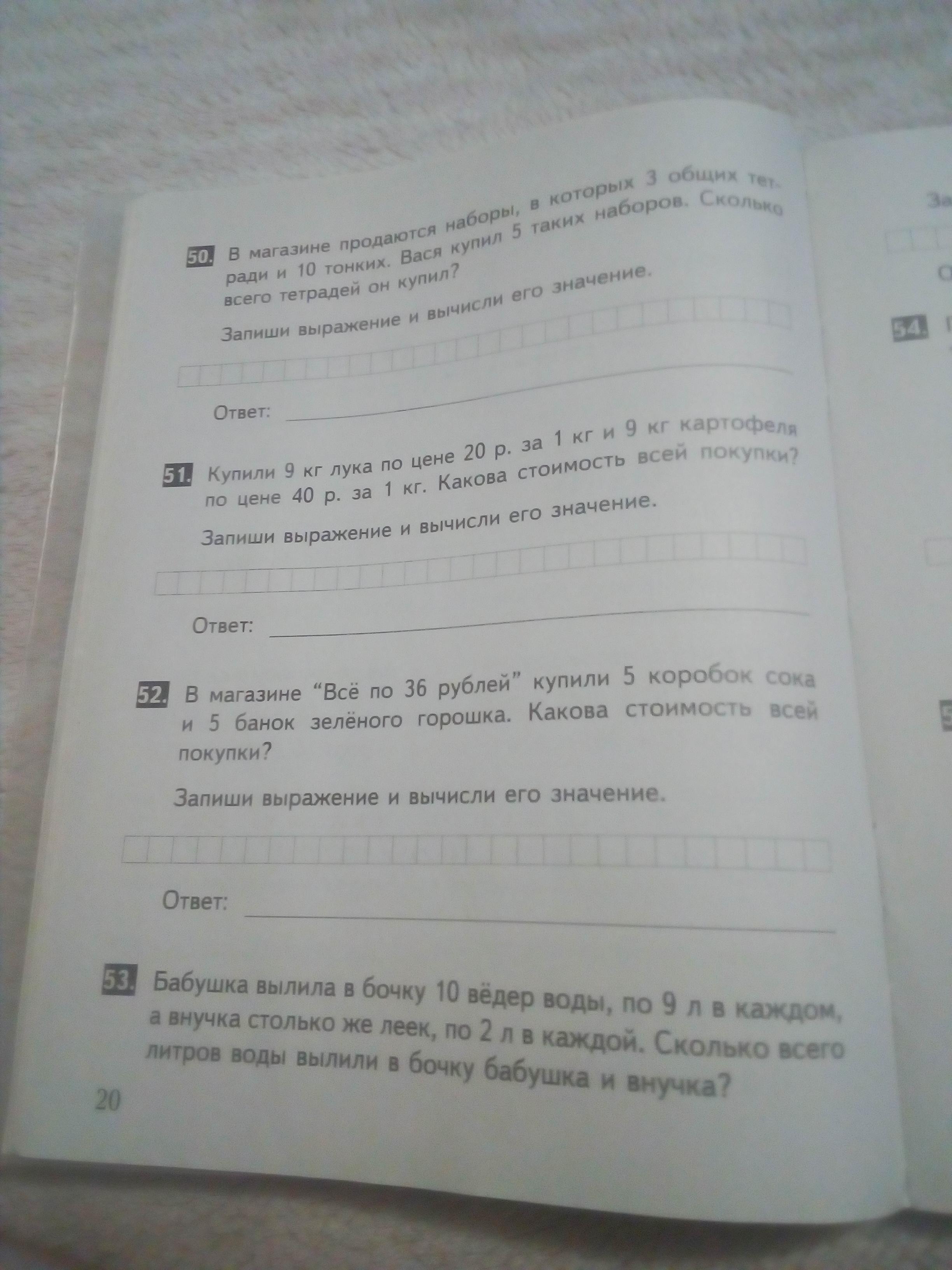 2) 10×2=20(л)-воды вылила в бочку внучка
