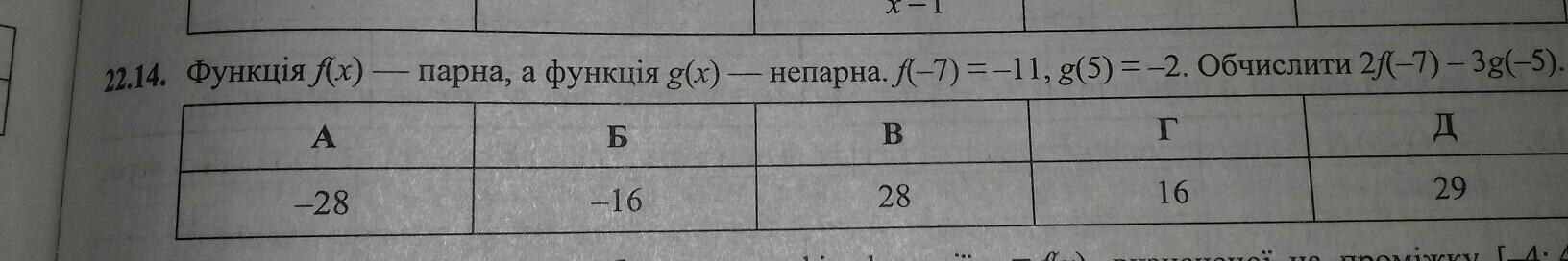 g - непарна, тому g(-x)=-g(x) g(-5)=-g(5)=-(-2)=2