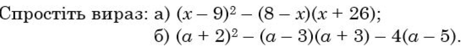 a) (x - 9)² - (8 - x)(x + 26) = x²- 18x + 81 - (8x + 208 - x² - 26x) =