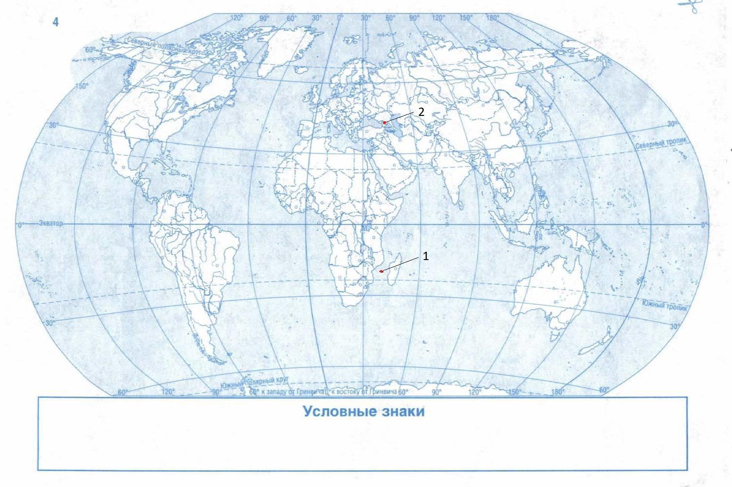 Точка 1 – 19° ю. ш. 45° в. д.