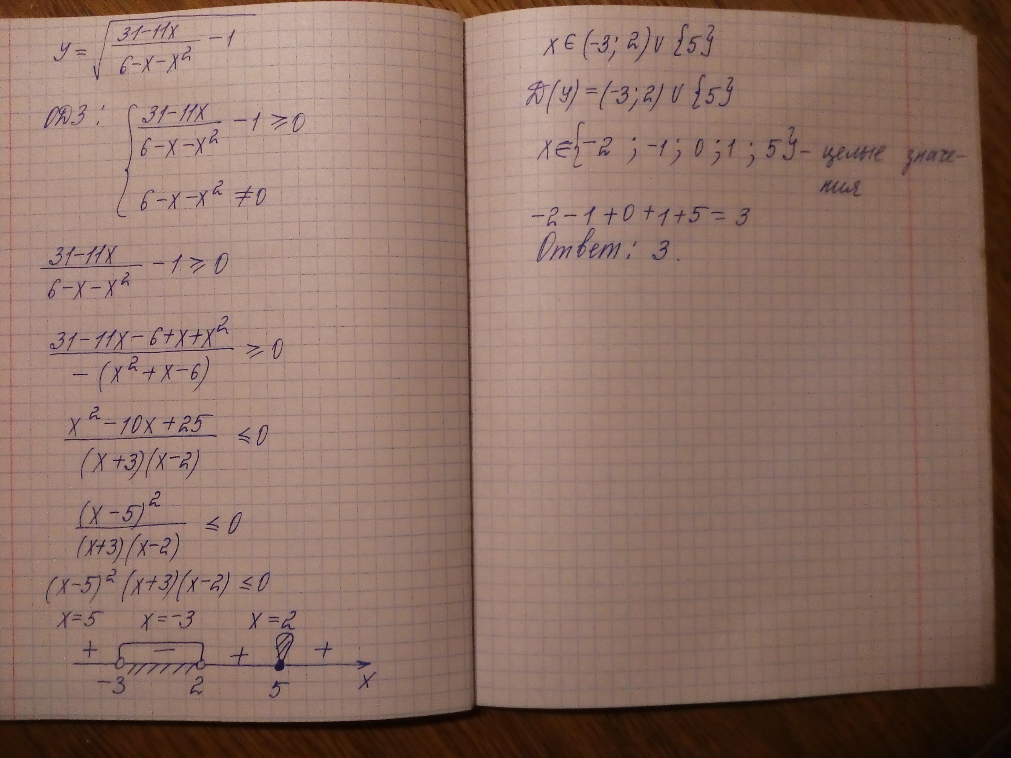 Помогите. Нужно найти сумму целых значения аргумента, принадлежащих области определения