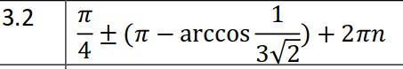 Помогите решить пример, чтобы получился такой ответ(картинка 2), у меня получился через арксинус.