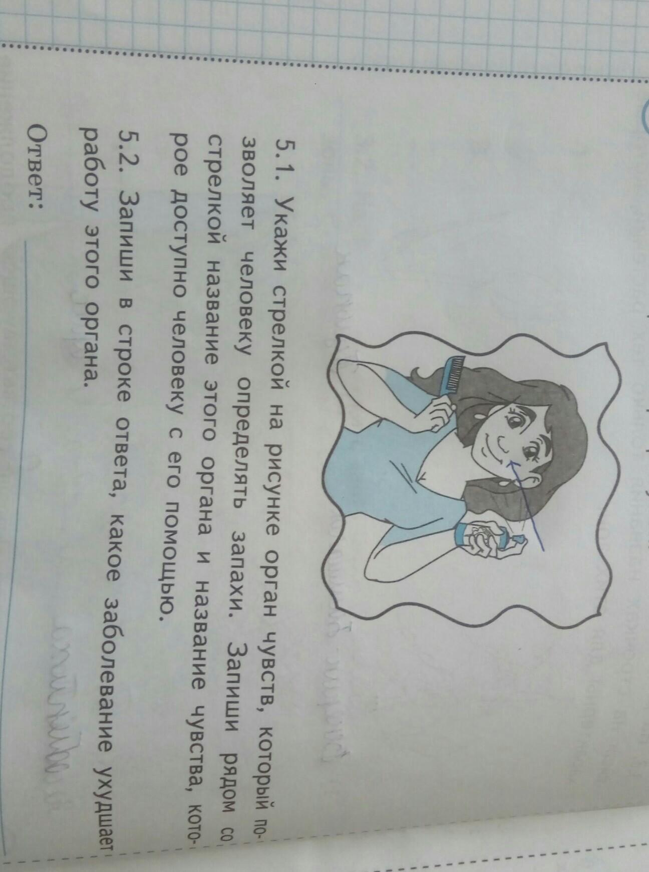 внимательно Рассмотри рисунок укажи стрелкой на рисунке орган чувств который позволяет человеку определять запахи Запиши рядом со стрелкой название этого органа и название чувство которое доступно человеку с его помощью Запиши в строке ответа Какое заболевание ухудшает работу этого органа