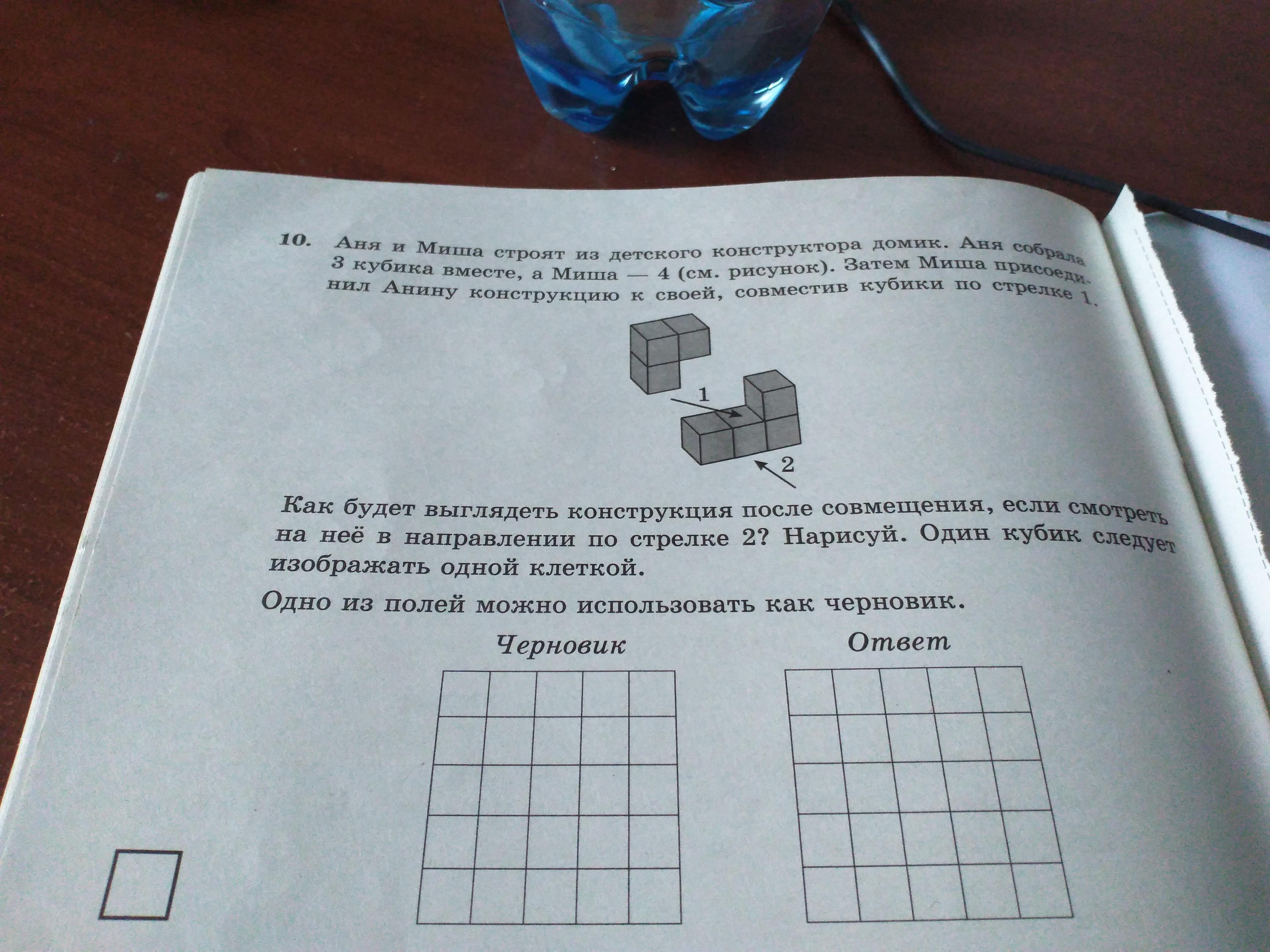 Аня и Миша строят из детского конструктора домик Аня собрала Три кубика вместе а Миша 4 затем Миша присоединил Аню конструкцию к своей совместив кубики по стрелке 1