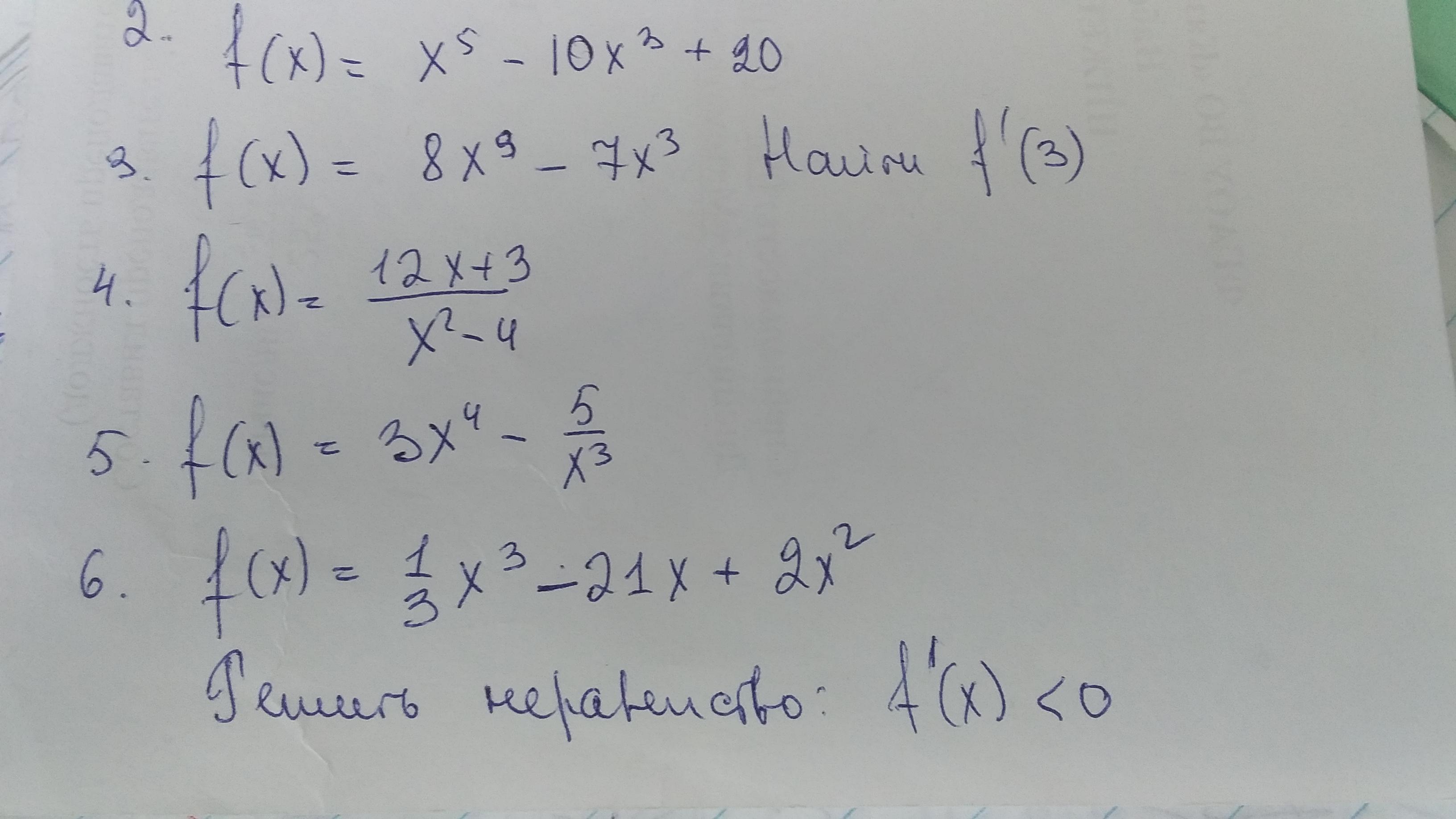 Очень срочно!!!! задания по нахождению производных. Нужно решить последние два задания. заранее спасибо))))