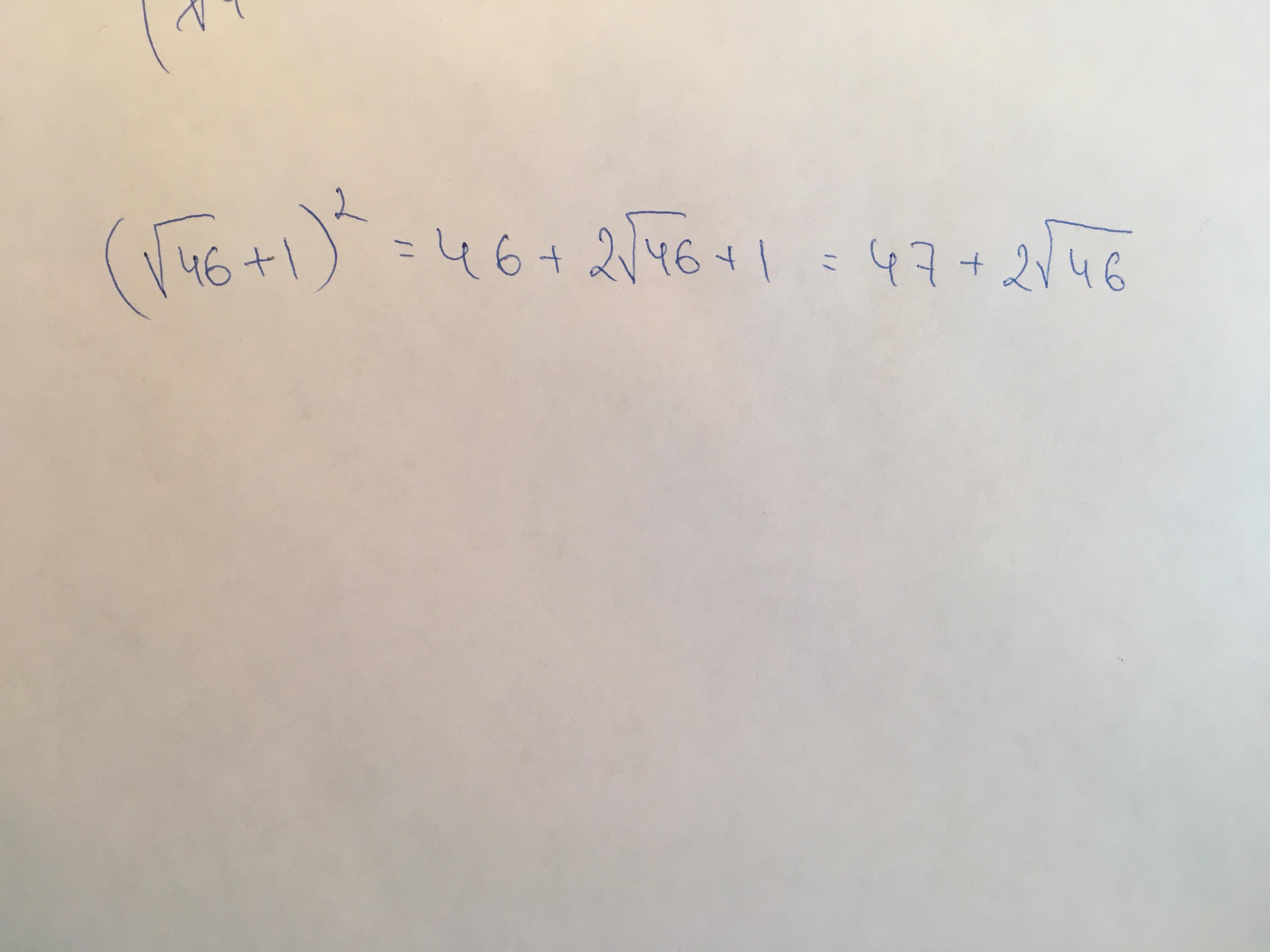 Ответ: получится 47, так как любое число в квадрате даёт это же число, только без квадрата, и 1 в квадрате, всегда один, 46+1=47