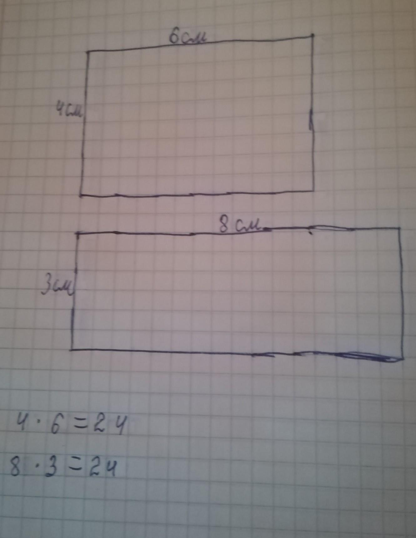 Начерти прямоугольник со сторонами 4см и 6см и другой прямоугольник такой же площади