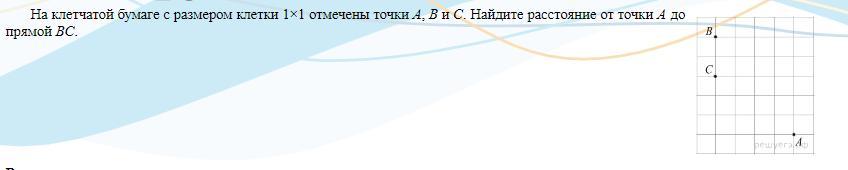 Невооуруженным глазом видно, что длина перпендикуляра, проведенного из точки А к прямой ВС, равна 4 клеткам. а эта длина и соответствует расстояниию, которое надо было найти.
