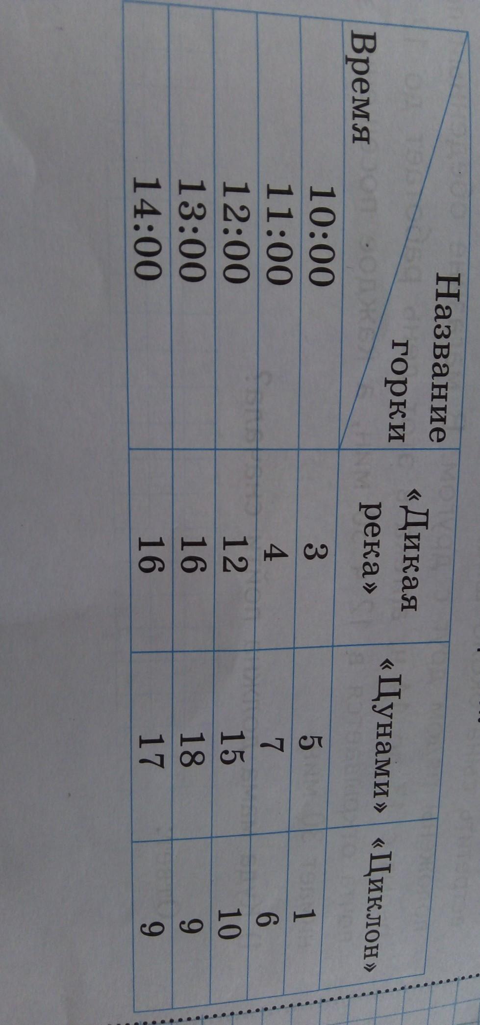 в таблице приведены Данные о количестве человек на различных горках аквапарка в разное время.