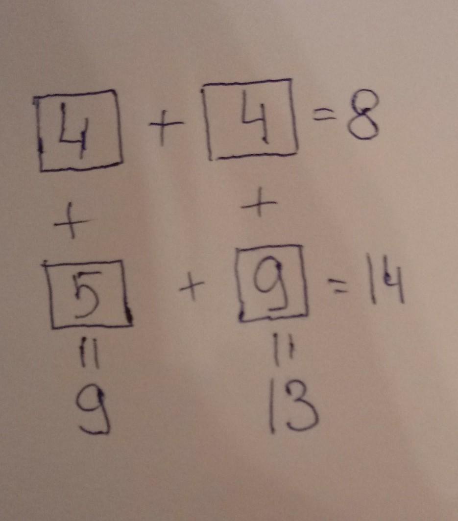 вроде так. 4+2=8; 5+9=14; 4+5=9; 9+4=13.