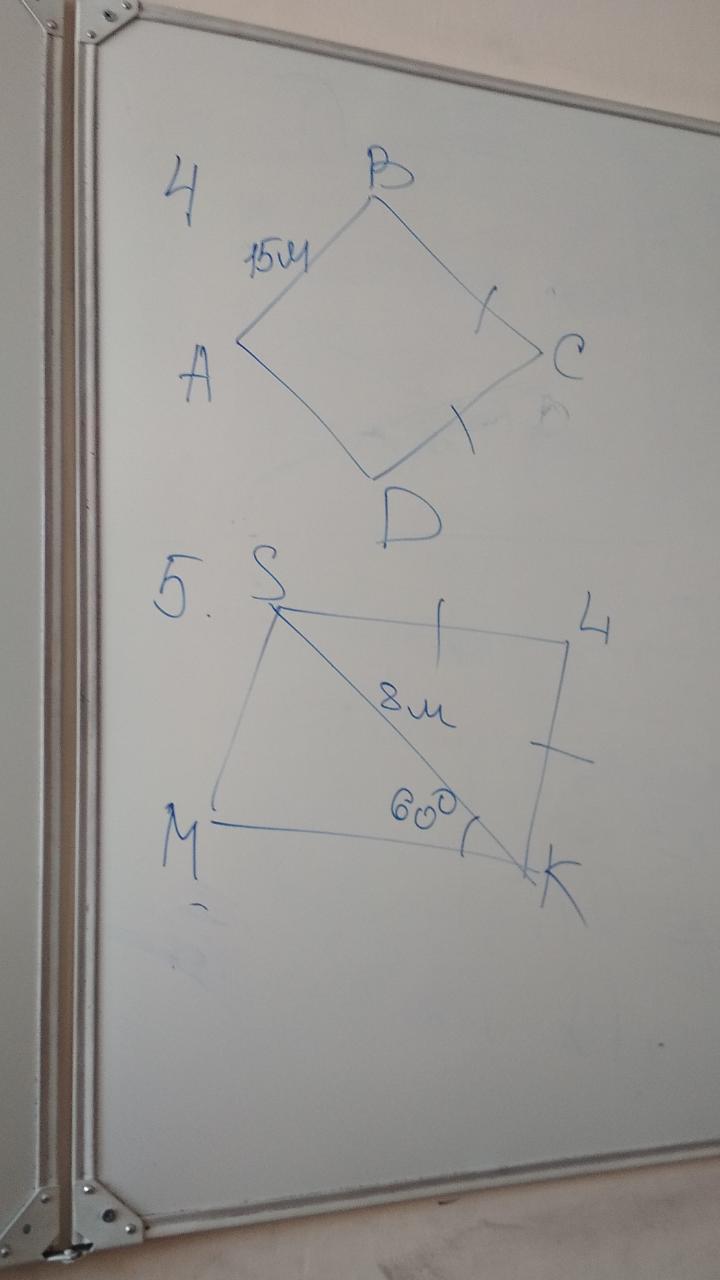 5. Так как это ромб, то его диагонали являются биссектрисами внутренних углов. Значит, ∠SКМ =∠SКL=60°, тогда и ∠КSl=∠SlК=60°, ΔSLК имеет равные стороны, т.е. 8м, а периметр 8*4=32/м/