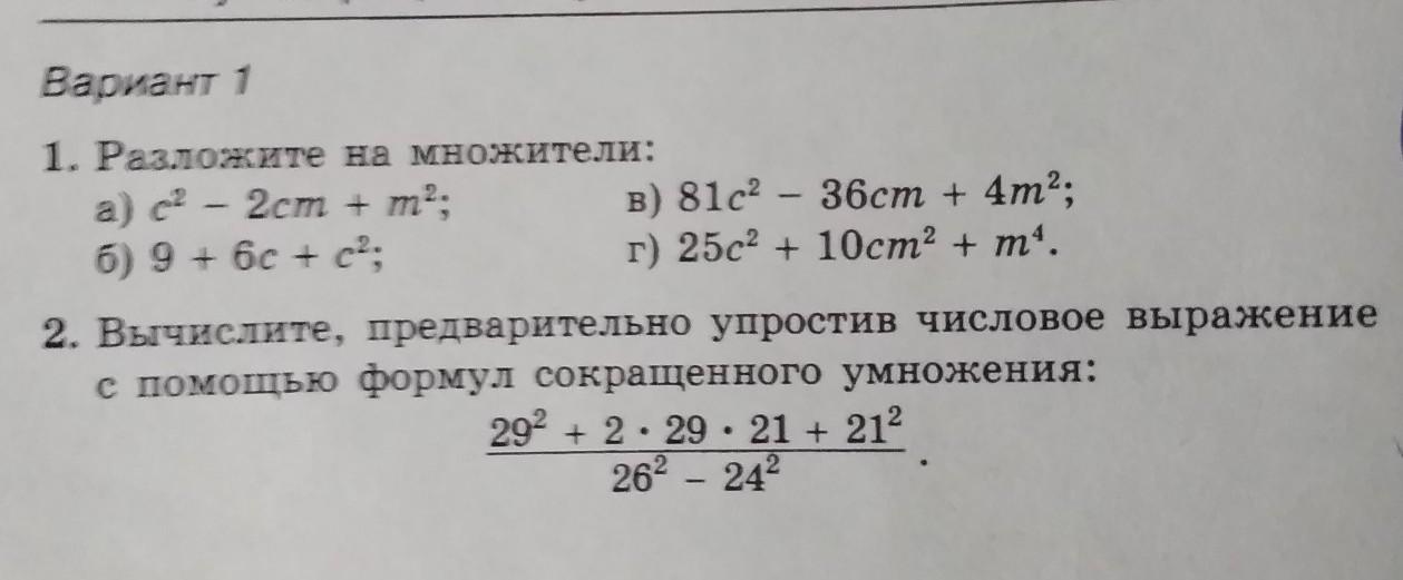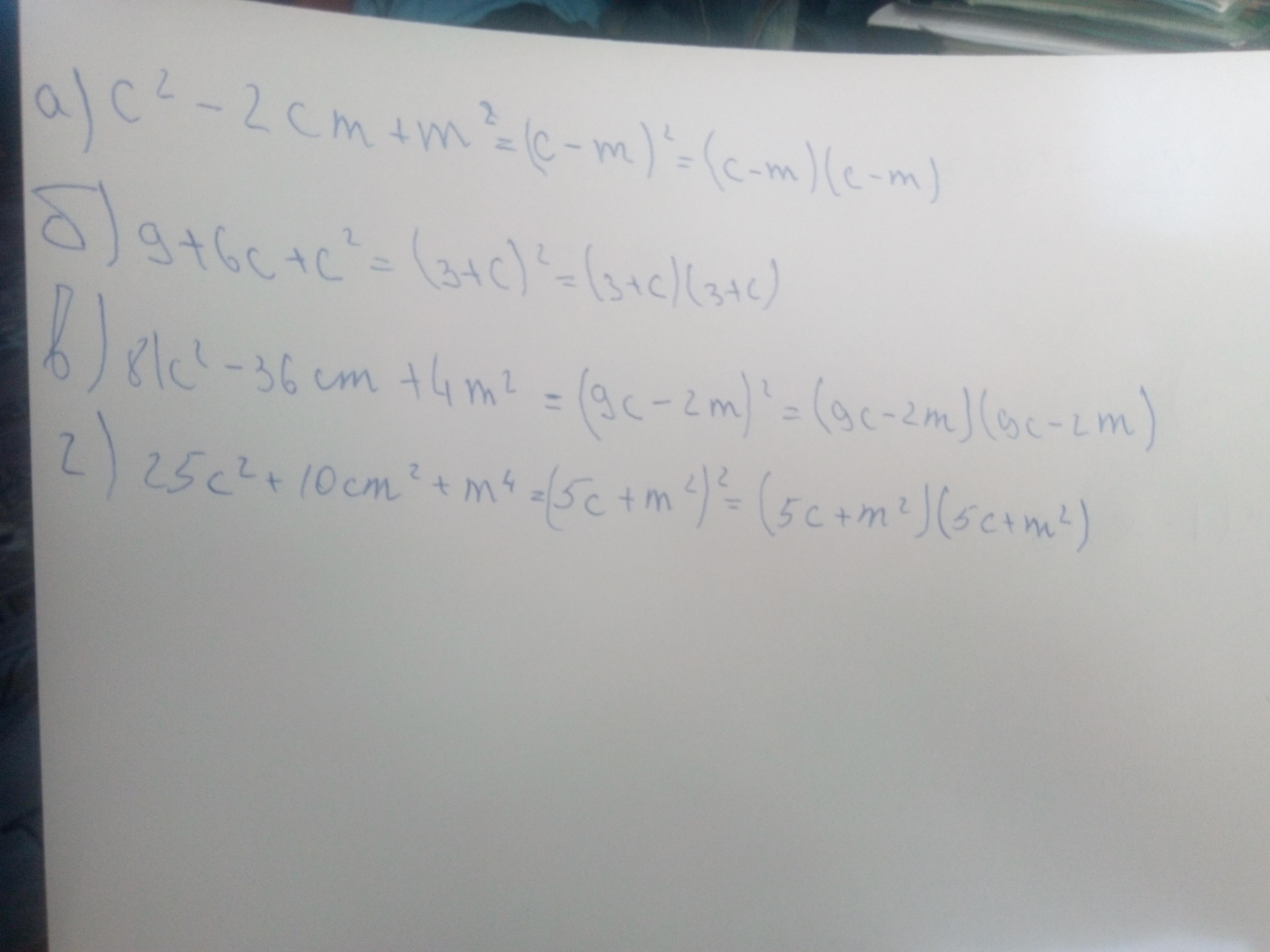 г) 25c^2+10cm^2+m^4=(5c+m^2)^2