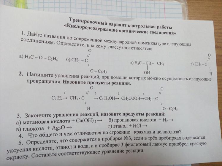 4) CH3COOH +CH3CH2OH = CH3COOHC2H5 +H2O ( этилацетат)