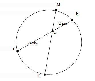хорды МК и РТ пересекаются в точке А. Найти длину АМ. если АР-2дм, АТ-24 дм, а АМ относится КА как 3 :4