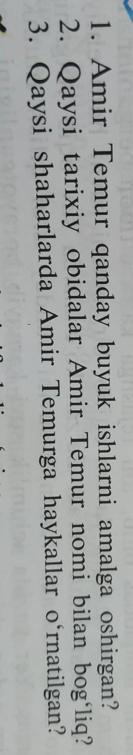 1 Amir Temur shahrisabzda oq saroy qurdirgan.